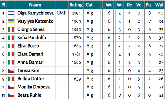Серед жінок Василиса стала другою, пропустивши вперед міжнародну гросмейстерку Olga Kamychleeva з Нідерландів.