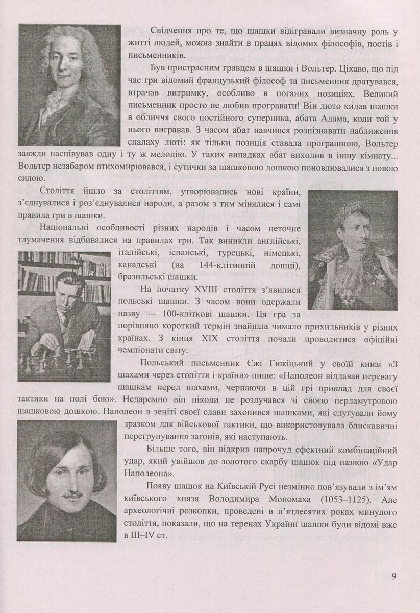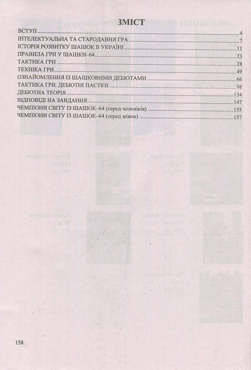 У посібнику подано основні відомості з теорії шашкової гри: правила, тактика та техніка. Розглянуто основні типи пасток у партіях розіграних на відповідальних змаганнях. Запропоновано достатню кількість зображень комбінацій для кращого візуального сприйняття. А також представлено завдання для самостійного вирішення та відповіді до них.