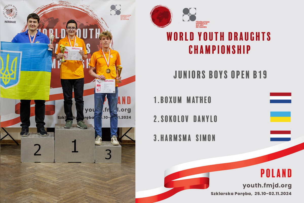 Срібну нагороду у віковій групі «Юніори» (B19) завоював майстер спорту Данило Соколов. Свою медаль шашкіст виборов у класичній програмі. Цей результат також є прямим нормативом для виконання міжнародного звання International Master. Проте, щоб отримати це звання, спортсмен та його команда мають ще попрацювати над міжнародним рейтингом Данила.
