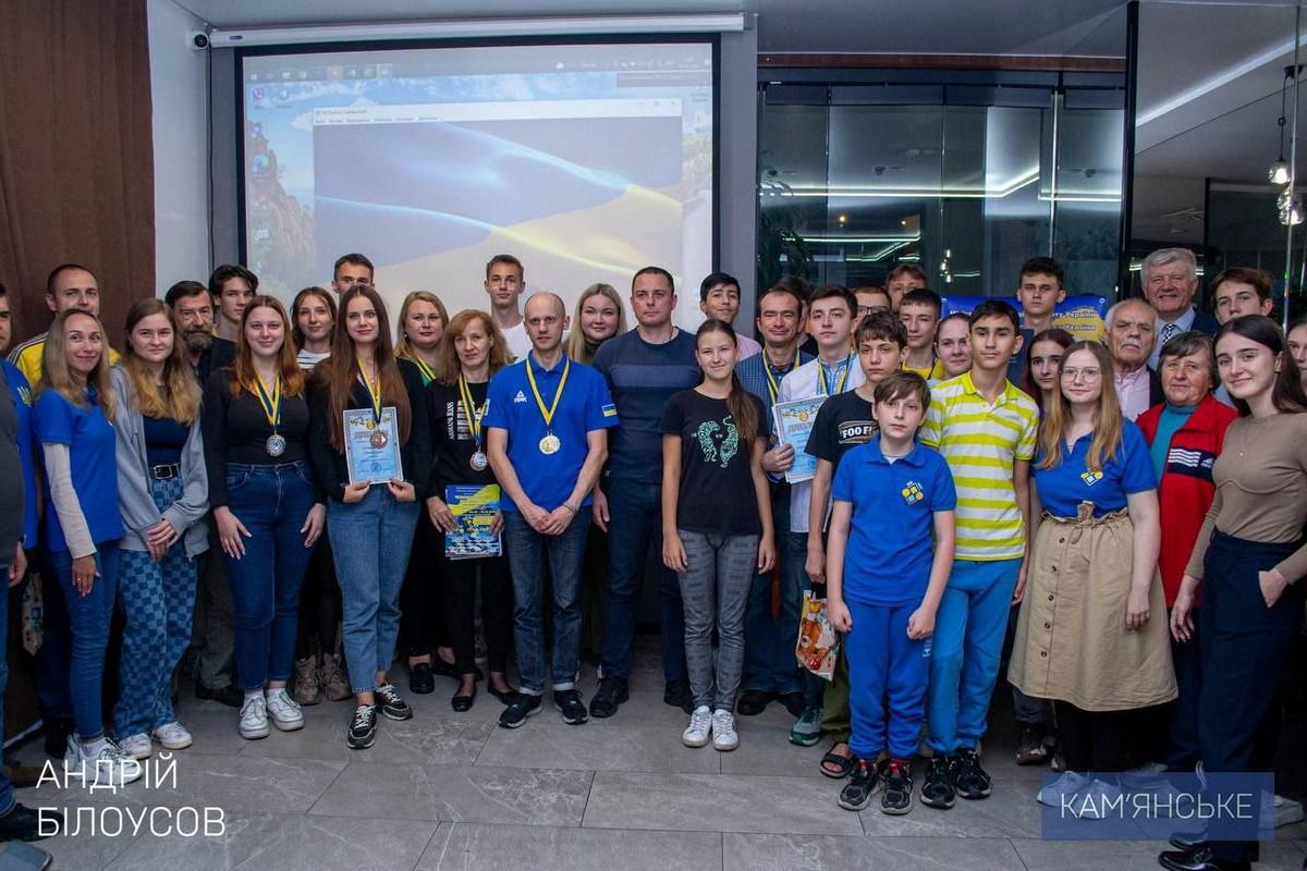 Фіналісти чемпіонату України з шашок-100. У центрі мер міста Кам’янське Андрій Білоусов