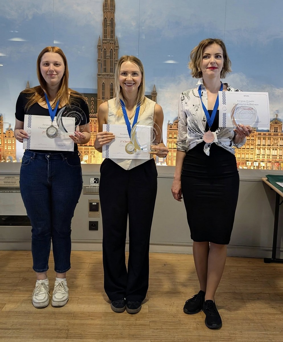 Якби не сумна поразка в останньому раунді від латвійської шашкістки, а всього гралося 9 турів за швейцарською системою, на найвищий щабель п’єдесталу могла претендувати Анастасія Глушко, яка останнім часом стабільно виступає в будь-якому виді шашок. Серед спортсменок, що боролися за призову трійку, в української шашкістки був найвищий коефіцієнт. Проте навіть поразка залишила її в трійці призерів. 12 набраних очок з 18-ти можливих дозволили А.Глушко вибороти срібну нагороду.