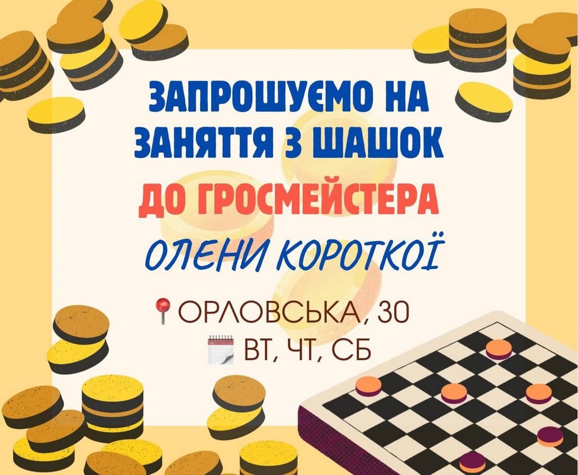 Відкривається новий набір учнів на заняття з шашок під керівництвом досвідченого тренера, міжнародного гросмейстера, багаторазової чемпіонки світу – Олени Короткої.