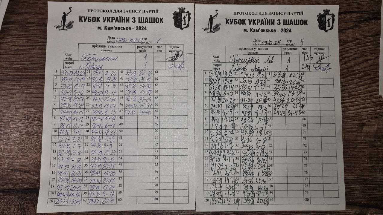 1. Порецький Лев - Лебедь Андрій - 1:1