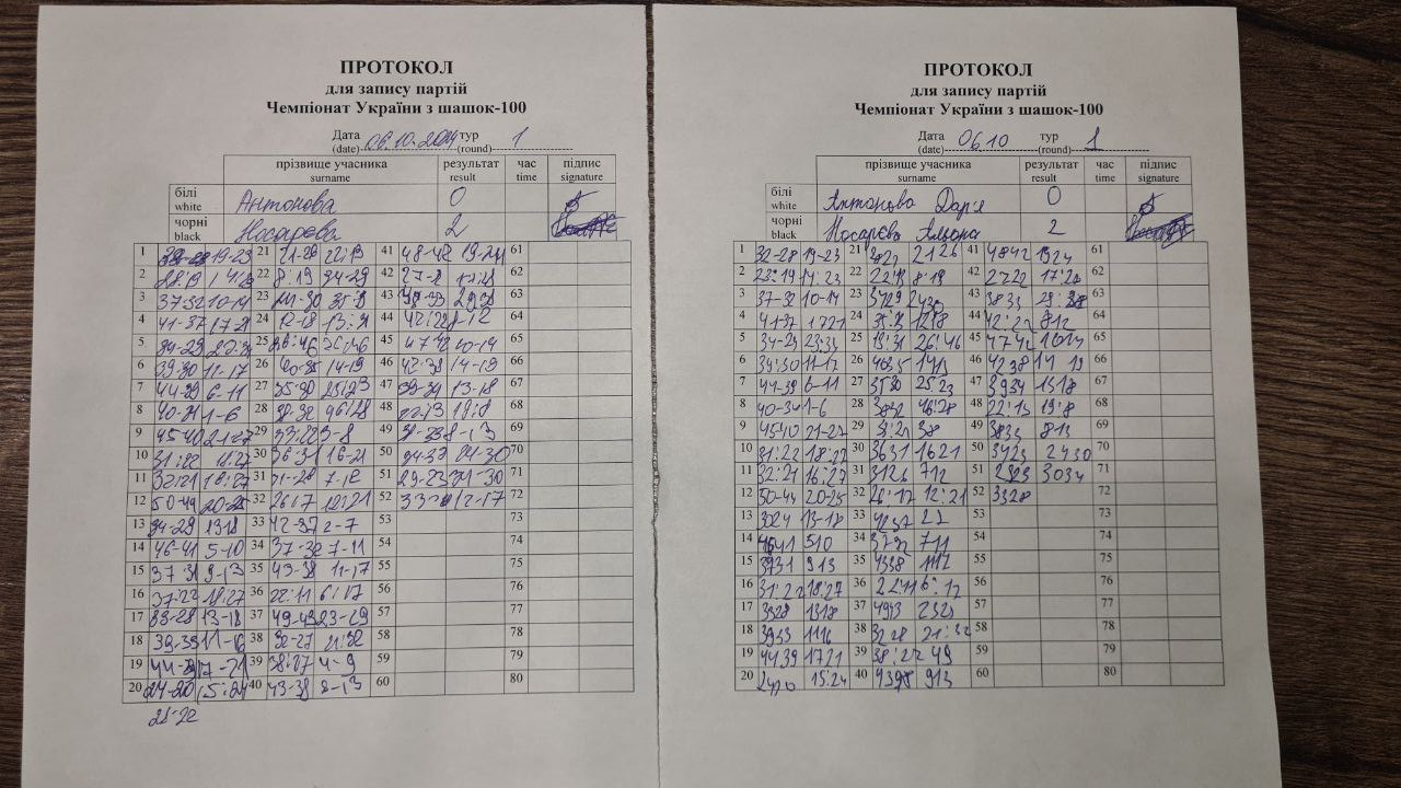 1. Пічка Анастасія - Глушко Анастасія - 1:1