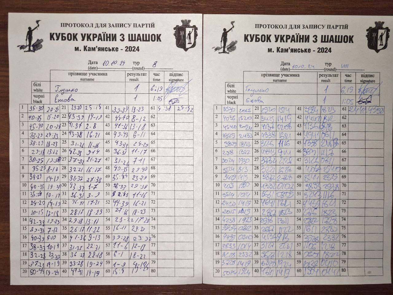 1. Глушко Анастасія - Єжова Валерія - 1:1
