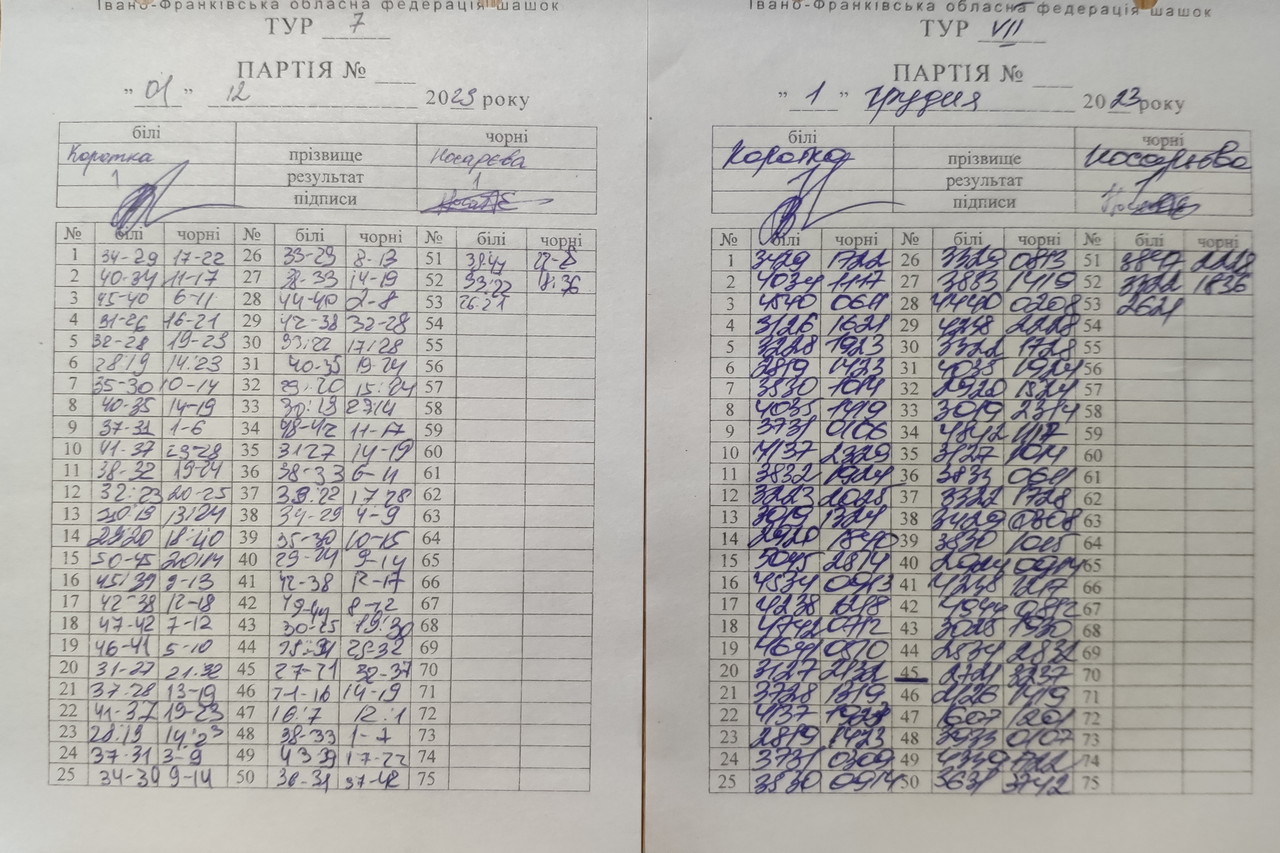 3. Коротка Олена - Носарєва Альона - 1:1